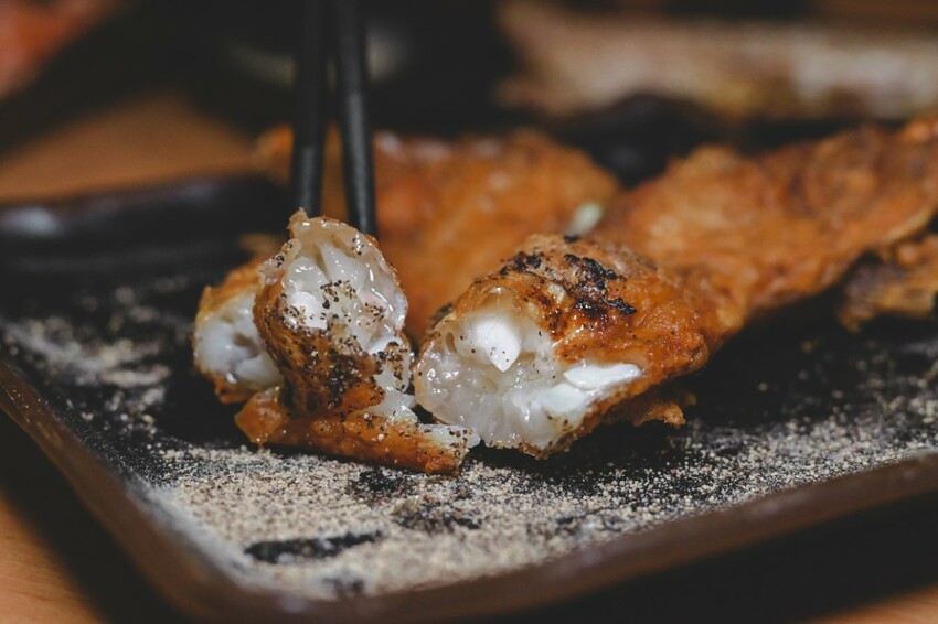 使用台灣鯛下巴油炸,外皮炸得金黃酥脆,顏值100分很優秀。魚肉嫩口又膠質滿滿,吃起來無魚腥味,魚皮酥脆滿滿膠原蛋白Onega-3。