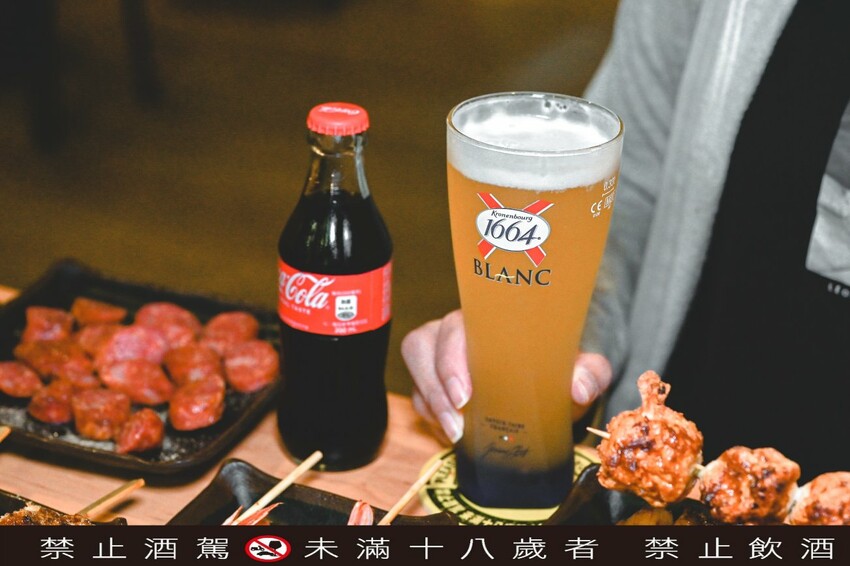 向我們隔壁桌的就很HIGH,直接點了超大一桶1664酒桶來配串燒,真的很會享受人生。