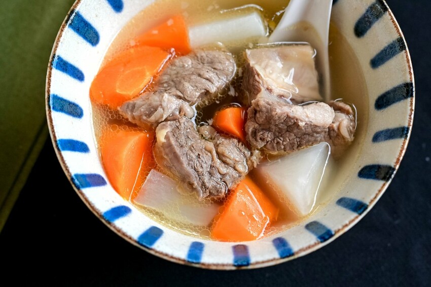 後來我還有加上麵條一起煮,湯頭味道也沒變淡,我覺得看起來好像白開水的湯頭喝起來很牛阿,還吸收了紅、白蘿蔔的香甜變的更加清爽甘甜,一點也不輸給紅燒,肚子餓了就可以當一餐超級方便。