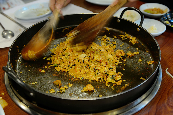 炒飯其實吃起來與石鍋拌飯有些類似,有焦脆的鍋巴飯與一堆蔬菜組合而成,只是配料與醬料不夠多不然真的蠻像石鍋拌飯,不過加了馬自瑞拉起司的炒飯吃起來會牽絲實在很特別,想不到吃完剩菜也能變出新花樣而且又很美味,個人蠻推薦吃完達卡比順便再加點炒飯。