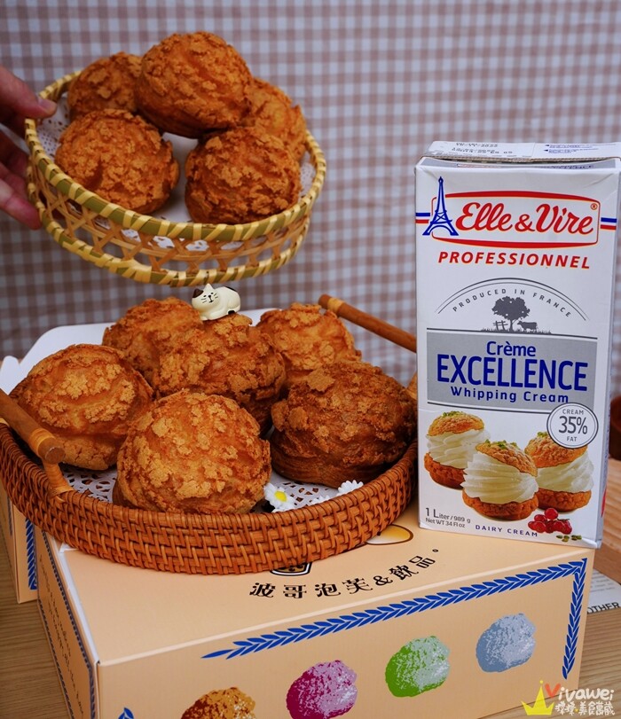 ▲波哥泡芙使用的是動物性鮮奶油,由新鮮牛奶中萃取出來的乳脂,是天然的鮮奶油,因為成分相對單純,奶香味也比較濃,成本相對比較高!而他們的泡芙是蛋奶素者皆可以食用的唷😋
