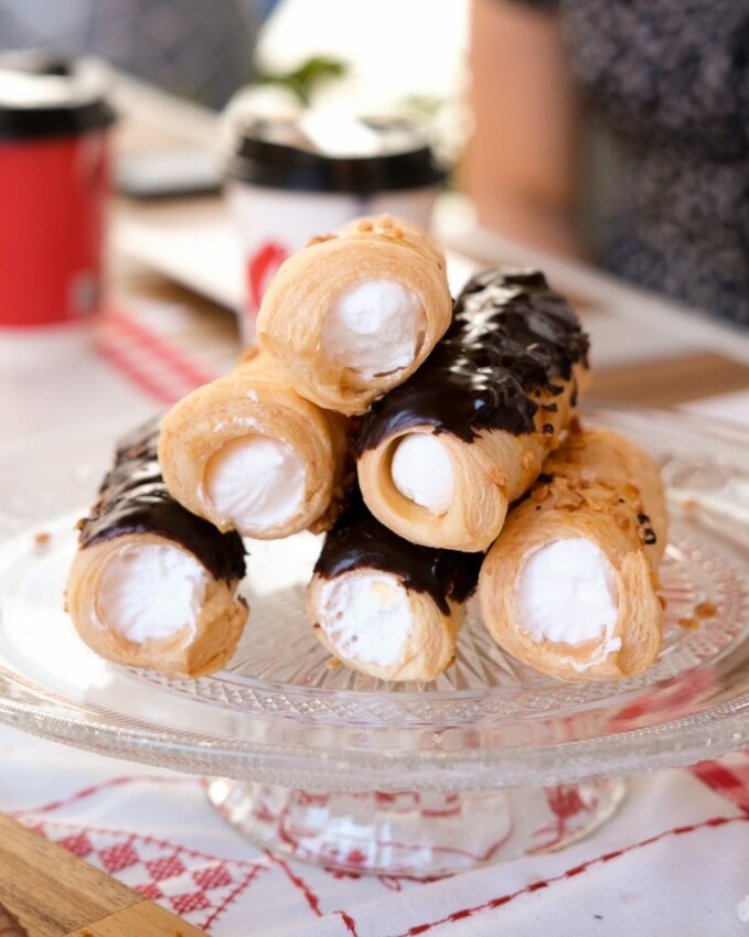 ▼撒上雪花般糖粉的手工自製酥皮,內餡包裹著義大利蛋白霜,是奧地利最經典的傳統點心,不管冷凍或是微烤口感都很不錯。