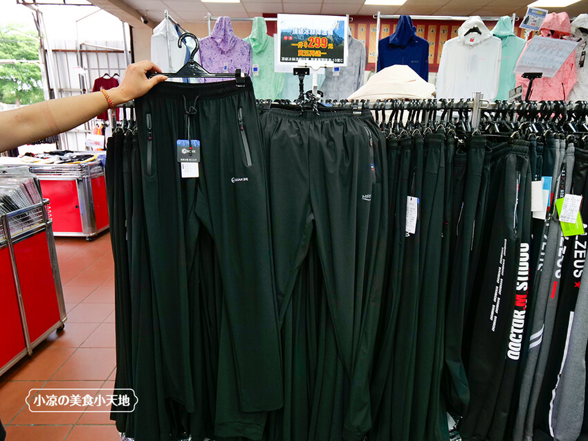 ▲褲子類的商品也不少,多種休閒長褲、涼感冰絲機能褲、耐磨型機能褲、彈力褲…等,有超多選擇,只安排來逛個一、二小時真的逛不夠啦!