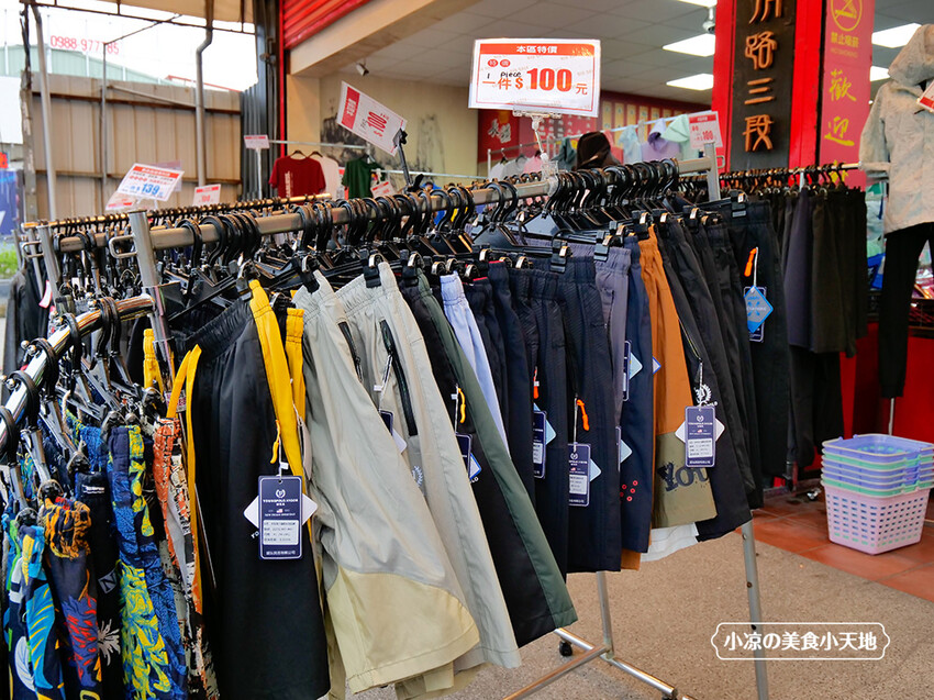 ▲這區一店門口前的100%純棉真理褲,一件只要$100元,這個價格也太殺了吧!而且他們家的真理褲可以修飾腿型,穿起來也不緊繃,是舒適的。