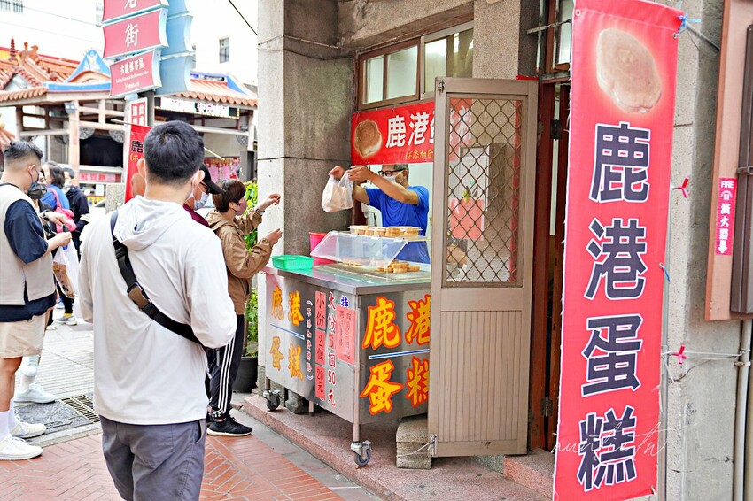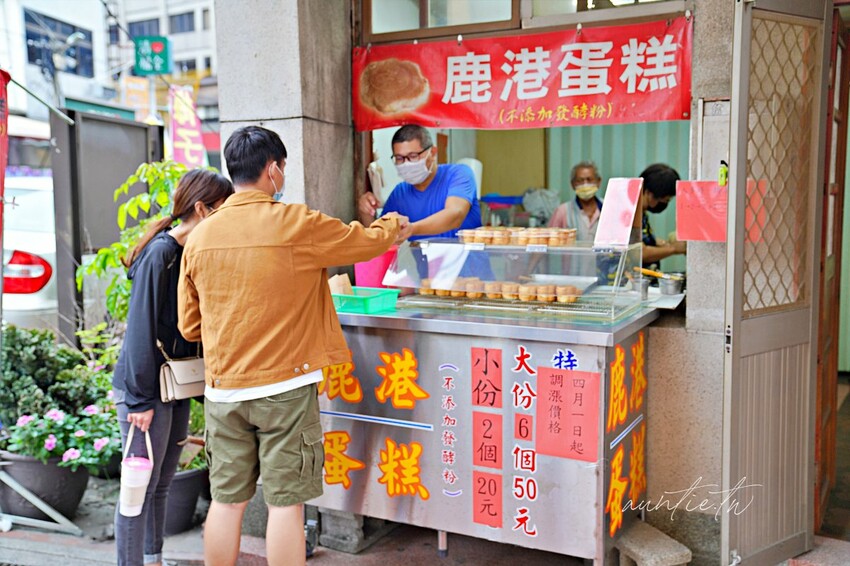 又發現一家鹿港老街美食民權路入口處有家「鹿港蛋糕」,就在後來開的「米弎豆お菓子処」對面,先前都沒看過,原本好像是攤車在老街對面賣,現在有店面了,看到好多人買也買了兩個來試試,不得不說,鬆軟細緻的口感,比一般雞蛋糕還大顆,認真的說,還真好吃耶!
