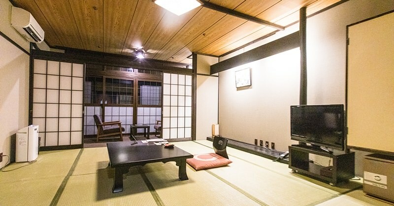 略顯新意的飯店外觀,猜想是經過翻修,因為一進到溫泉旅館內便感受到滿滿的古意,尤其是寬廣大廳的木樑木柱,感覺都是整根原本的日本建法,大廳並有炭火暖爐,消失旅客身上的寒意。