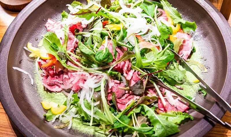 其他各種日式料理也有2、30種之多,其中這道たたき牛肉佐野菜,淋上胡麻醬蠻好吃的。