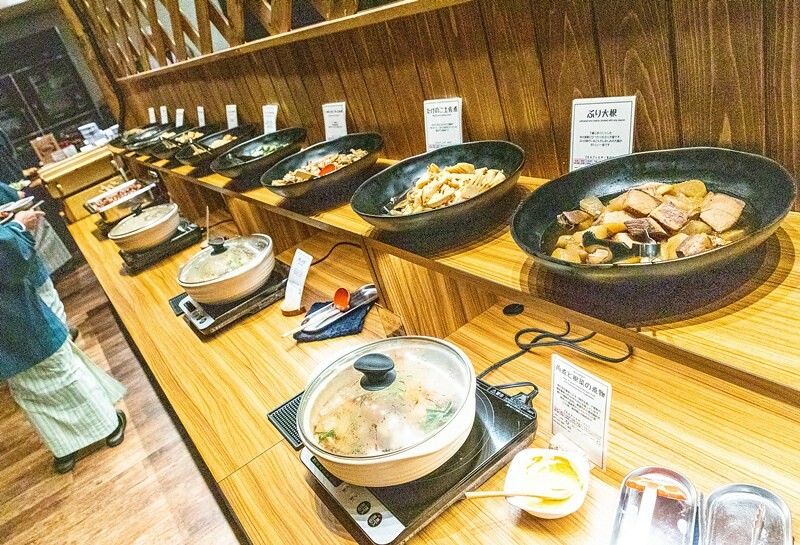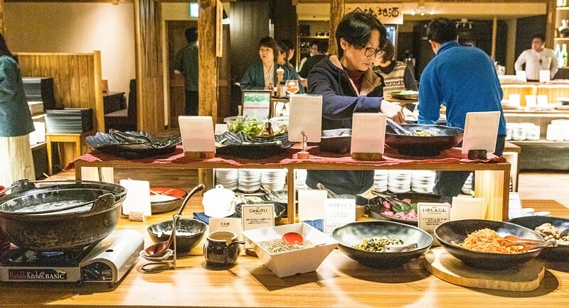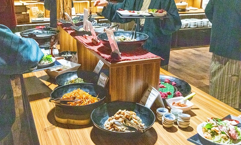 一般來說日本溫泉旅館提供的日式buffet都會以當地的鄉土料理為主,表面上看起來差不多,其實食材、用料和煮法及味道都略有不同。當然,也會有一些略帶洋風,外國觀光客也能接受的料理。