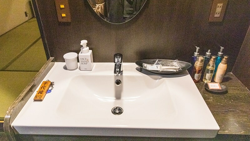 房間裡的個人洗潔用品、衛浴用品和備品齊備,空間較一般溫泉旅館略大型,也較新一點。