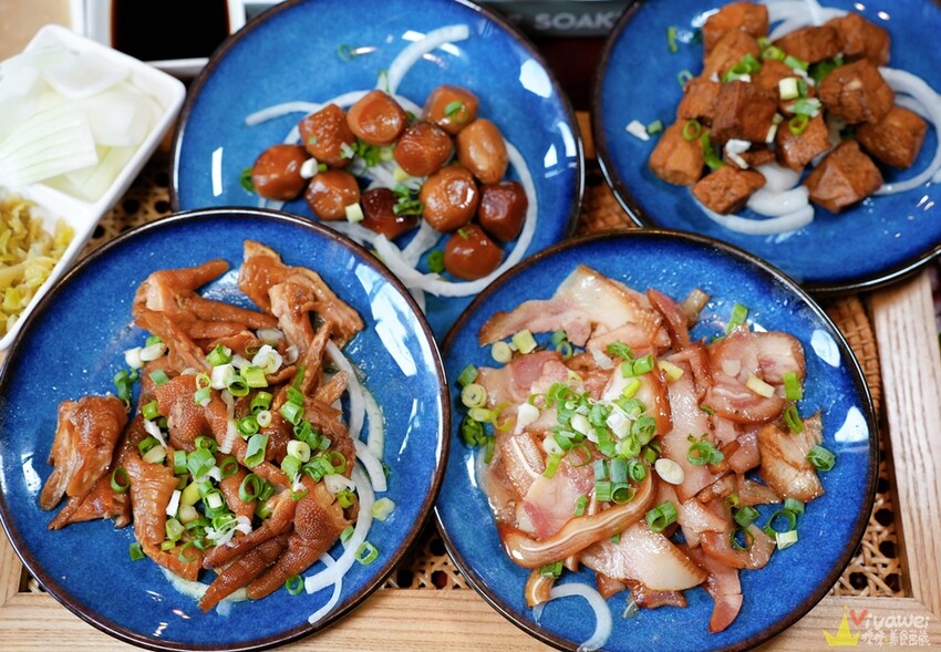 ▲來到小吃店當然不能少了小菜~小菜也是一間店的靈魂啊~這幾款小菜都有洋蔥和蔥花點綴!可惜我最想吃的粉肝已經售完!就點了鳳爪、豬耳絲、鳥蛋和豆乾!