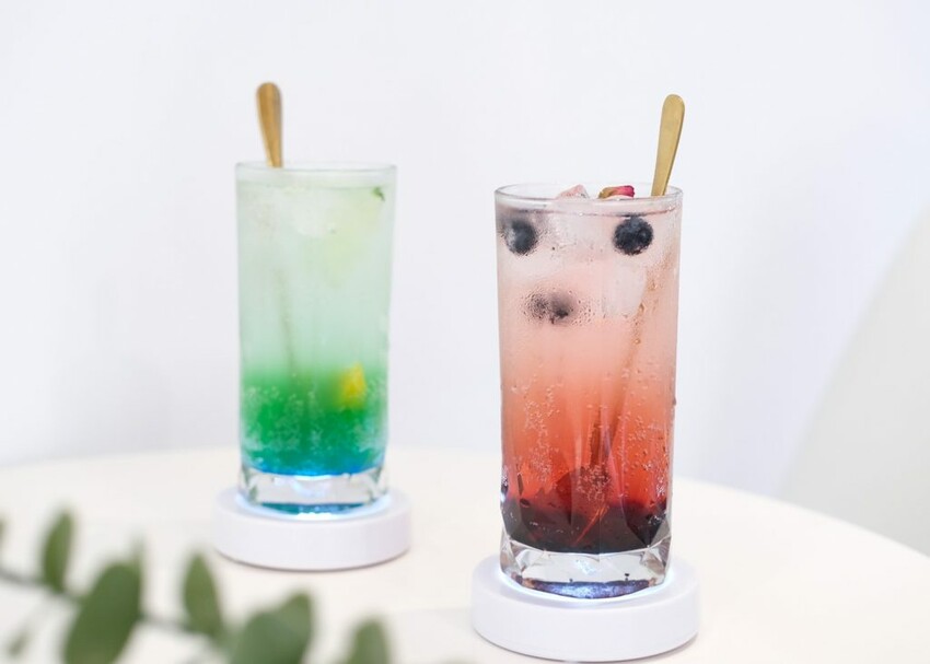 ▼飲品的漸層是以天然色素製作而成,清爽的氣泡在口中綻放,喝起來相當過癮,可以特調成氣泡飲和調酒。