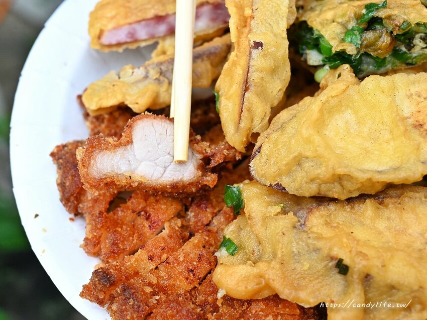 糖糖還蠻喜歡向上市場炸粿的炸茄子,外皮炸至金黃酥脆,咬下去裡頭的茄子還會爆汁呢,單吃可以吃到茄子的鮮甜,沾上些許醬汁更讚,讓人越吃越涮嘴