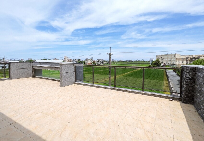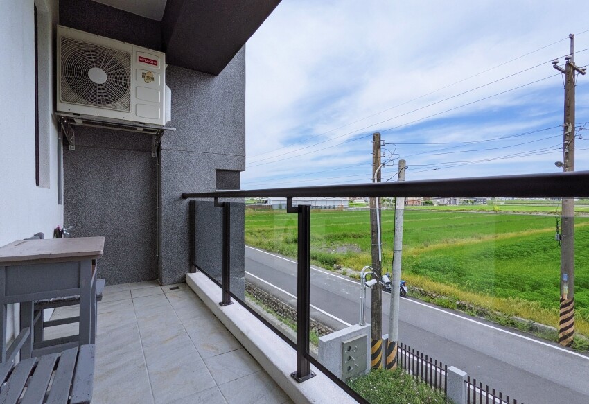 ▼在獨立小陽台欣賞蘭陽平原的田園縱橫相連風光,高樓層可視範圍廣,稻浪顯得更壯觀。