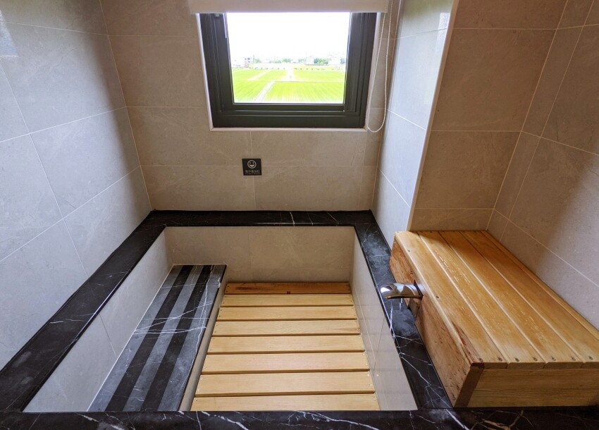 ▼薰衣草2人房的浴缸類似溫泉飯店湯屋的温泉式浴缸,容納兩人坐著泡湯不是問題,在有限的空間能享受舒服的水療。