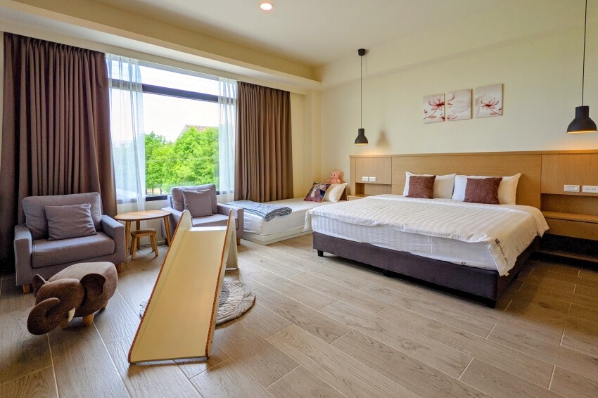 ▼201蒲公英5人房坪數為15坪,適合有三個小朋友的家庭入住,剛好很適合我們家,把小口愛、小口妹、小口弟通通帶來住都很寬啊!