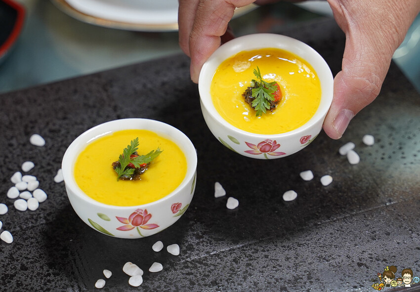 香草良緣使用大量的南瓜製作,帶入豆漿、松露,使用西芹點綴提味