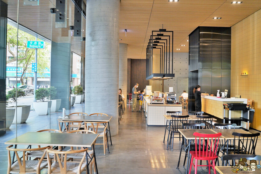 寬敞的用餐環境,整個落地窗連綿到對面的公園,讓視覺也顯得更加寬敞療癒