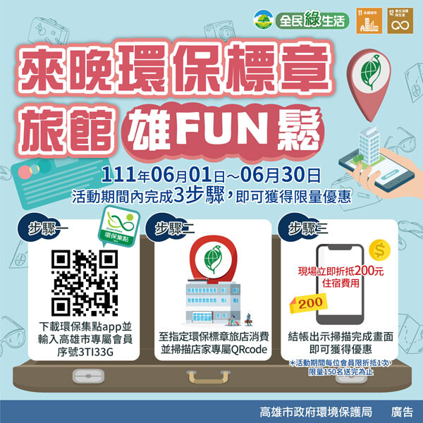 來晚環保標章旅館雄 FUN 鬆:至合作環保標章旅館
