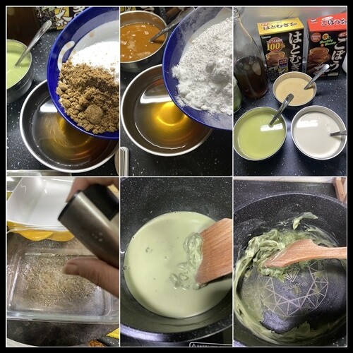 2.粉漿以小火加熱,以免結塊,持續攪拌至結塊變色