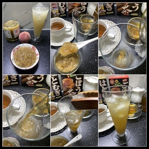 以水蜜桃果醬搭配清新的【山本漢方】薏苡仁茶&牛蒡茶