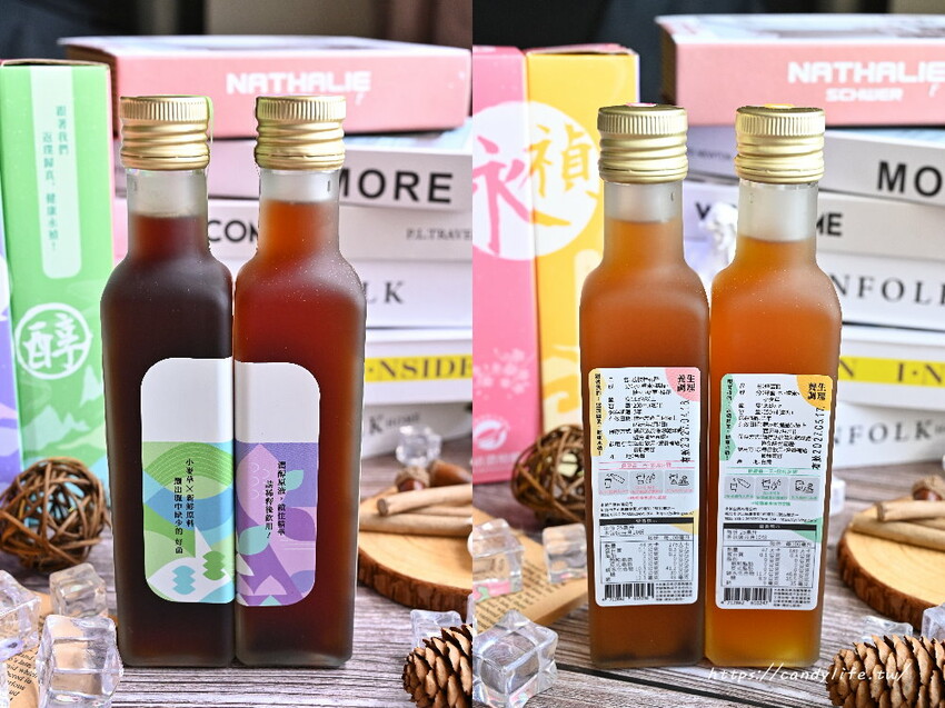 永禎醋飲的經典濃醇醋系列目前共有四種口味,分別是蜂蜜醋、荔枝桂花醋、青梅黑棗醋及桑椹橄欖醋,糖糖很喜歡永禎醋飲的瓶身設計,色彩繽紛,搭配幾何圖形,整體看起來超有質感,拿來送禮相當有面子呢