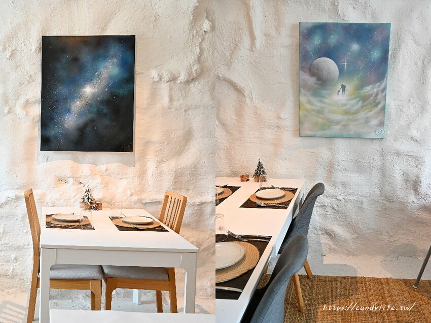 這間位在台中南屯的J先生的森林廚房可是台中首間藝術洞穴餐廳,主打義法私廚料理,餐點擺盤精緻美的就像藝術品,不僅餐點好吃,裝潢更是美到不行,除了一樓的玻璃屋,二樓更是打造了一個洞穴的模樣,宛如在洞穴裡享用餐點,店裡頭還結合DEREX藝術家的作品,讓大家品嘗美食的同時,還能欣賞DEREX藝術家的精美作品呢~