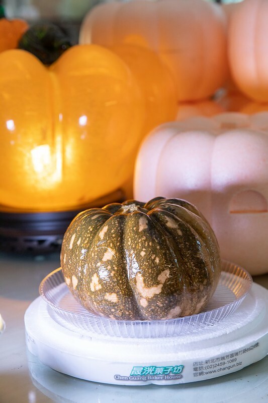 十年前來是買了冰箱預先切好的南瓜乳酪蛋糕,當天因為是平常日,加上疫情的衝擊,店家並沒有預先切好的一片一片南瓜乳酪,但親切的店員表示可以為我切一兩片,而且還是老闆親自操刀,一見這外帶的保麗龍居然也是可愛的南瓜狀,便買了一整模,也就是外觀看起來是完好無缺的南瓜,順便也厚著臉皮在店裡就直接拍了起來(笑)。