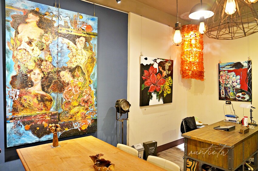 前面空間的主要的座位,後方空間更大,主要有展覽畫作展出,應該是不定期更換的,還有美美的貝殼燈飾。