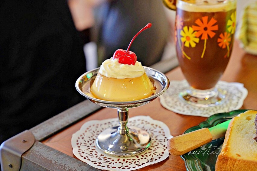 高腳杯的布丁看起來特別有質感,擠上鮮奶油還放上櫻桃,真的很像日本喫茶店的布丁造型。布丁口感很滑嫩,不過可能鮮奶油比例有點多,搭起來味道對我來說稍嫌淡了一些。