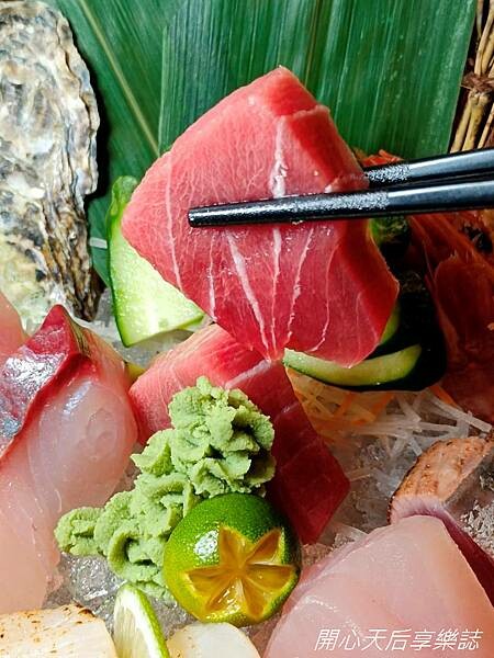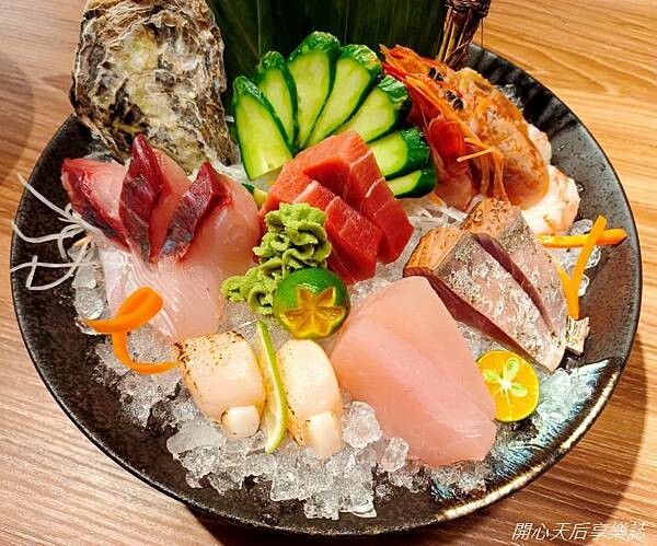 特上生魚片(4人)580元,擺盤很美,大多是當季生魚片-鮭魚/黑鮪魚、生食級干貝、天使紅蝦,生蠔,生魚片都蠻厚一片的,在燈光下,魚肉顏色鮮亮晶透,一看就知道很新鮮!