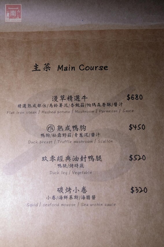 很多朋友對於餐酒館的印象都停留只能要品酒才能來,其實不管喜歡品酒或是喜歡美食也都可以來用餐、小酌。而位於自強街的『漫草玖零餐酒館』離新美街很近,從新美街慢慢散步過來也不錯,如果開車的朋友這裡也很好停車(開車不喝酒)。