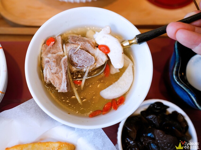 ▲當天的湯品是藥膳排骨湯~裡面有排骨和杏鮑菇~還加了些薑絲和枸杞點綴~湯頭很清爽好喝~