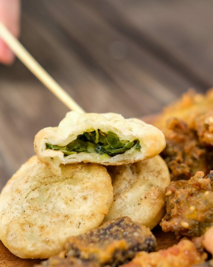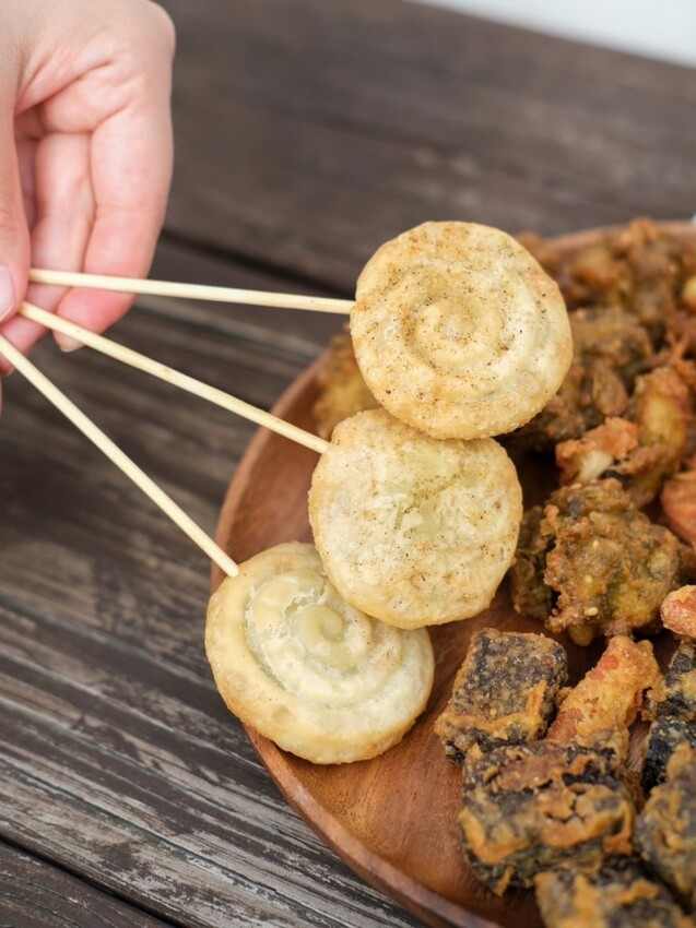 巷口蔥仔餅💰35元/醬燒米血💰35元/南部黑輪片💰35元 (任選三樣100元)