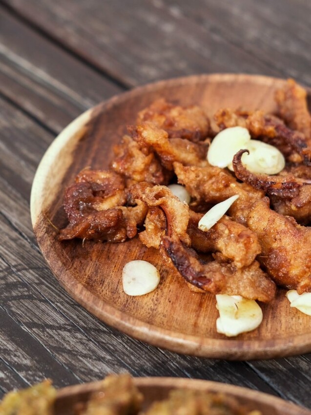 ▼整份能吃到魷魚圈和魷魚腳部位,推薦可以選擇招牌醬蒜醬汁,鹹香風味再搭配新鮮的蒜片,減少了炸物吃多了會膩口的感覺~