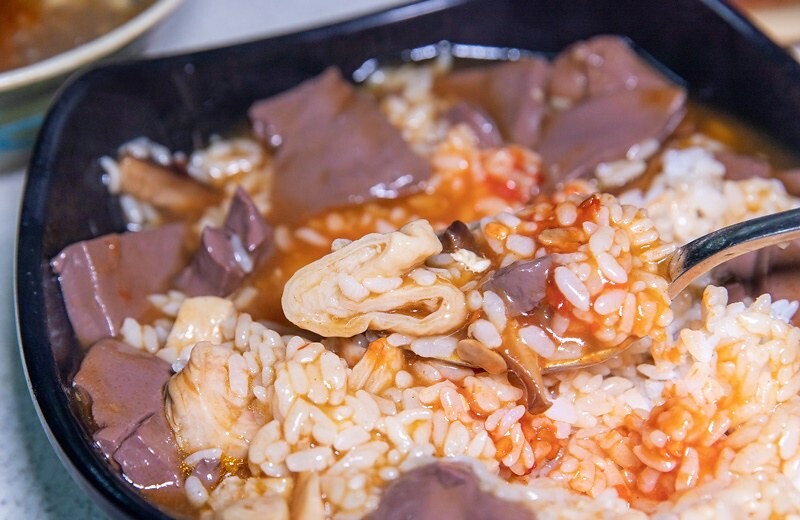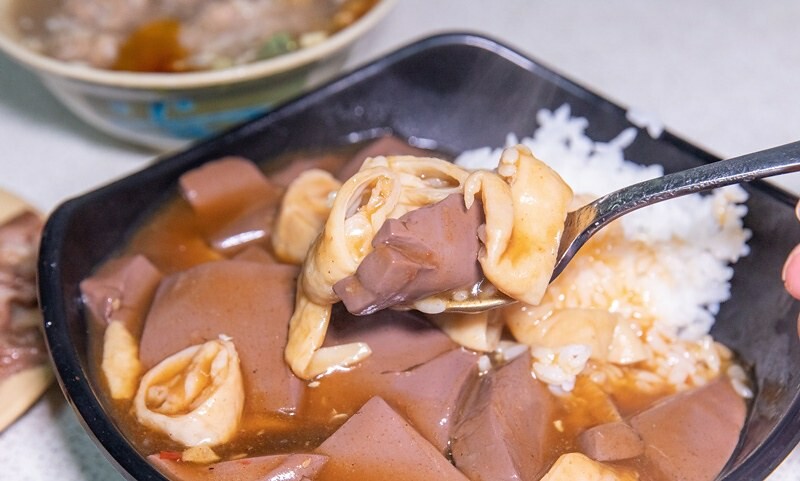 明明本來是要點沙茶蓋飯,不知為何坐下來說的卻是五更腸旺飯,端上來發現就是一般中餐食堂、小火鍋那種台式五更腸旺倒在飯上,以65元來說給的份量算是不少(我指的是腸旺)。