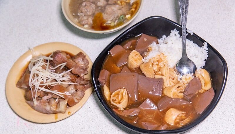 「小吃」。對,這間店板橋埔墘巷弄四十年的老店,在google就只得這兩個字,不是我故意賣弄虛玄不說名字...。最近,又突然想念起學舒國治老師穿巷走弄光憑眼睛瞧的尋找不起眼的小店,但這樣幾乎沒啥外地人知道,也不會有媒體甚至是網紅、部落客follow的店,連打個卡都很困難,加上不好和店家打屁的個性,往往不知從何下手。五更旺腸飯、肉羹、豬頭皮,就是這樣用看的看來的,後來在板橋區美食里的告知才知招牌是米粉湯xd