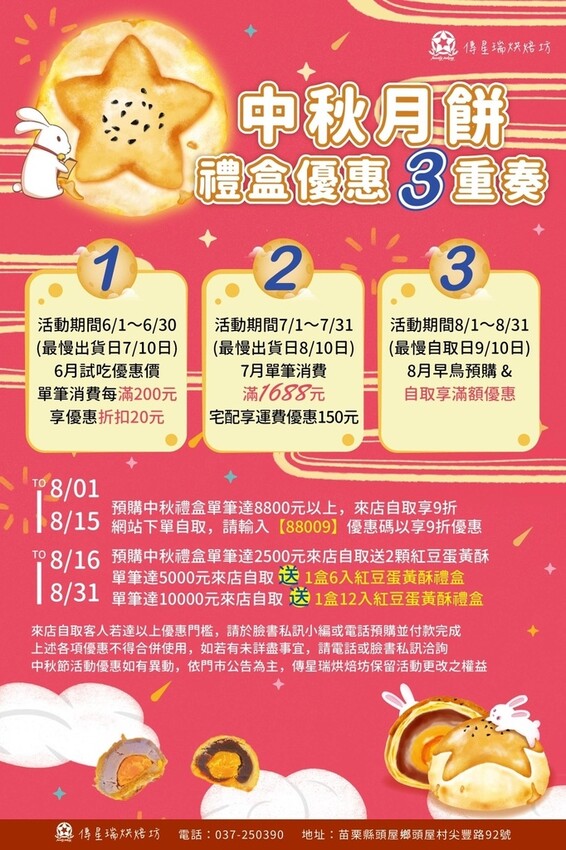 中秋禮盒推薦-苗栗頭屋 傳星瑞烘焙坊 中秋禮盒優惠3重奏