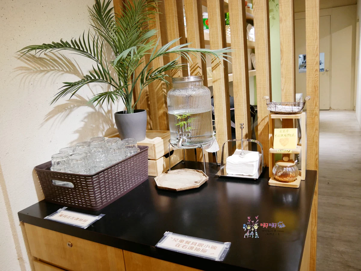 ▲旁邊有水、兒童餐具和餐巾紙可以自己拿取