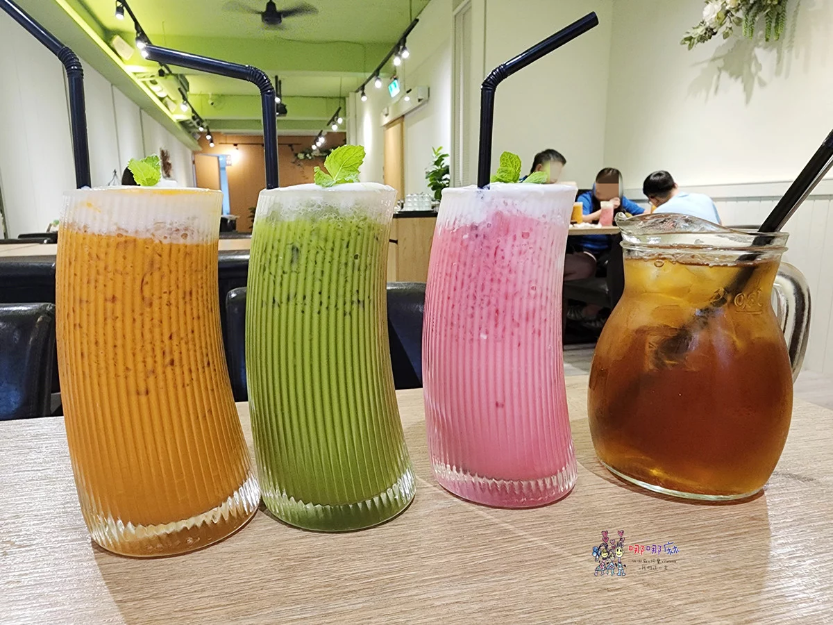 既然是泰式料理店泰式飲料當然是不可少的,基本的秘製香蘭泰式奶茶和泰讚了綠奶茶當然是必點的,依照泰國當地的傳統添加碎冰,就算無法去冰喝起來也不覺得冰塊礙事。我們今天點的三種奶茶類上面都有一層椰子奶蓋,是好咖 Thai 特別添加的創意,和泰奶還蠻合的。