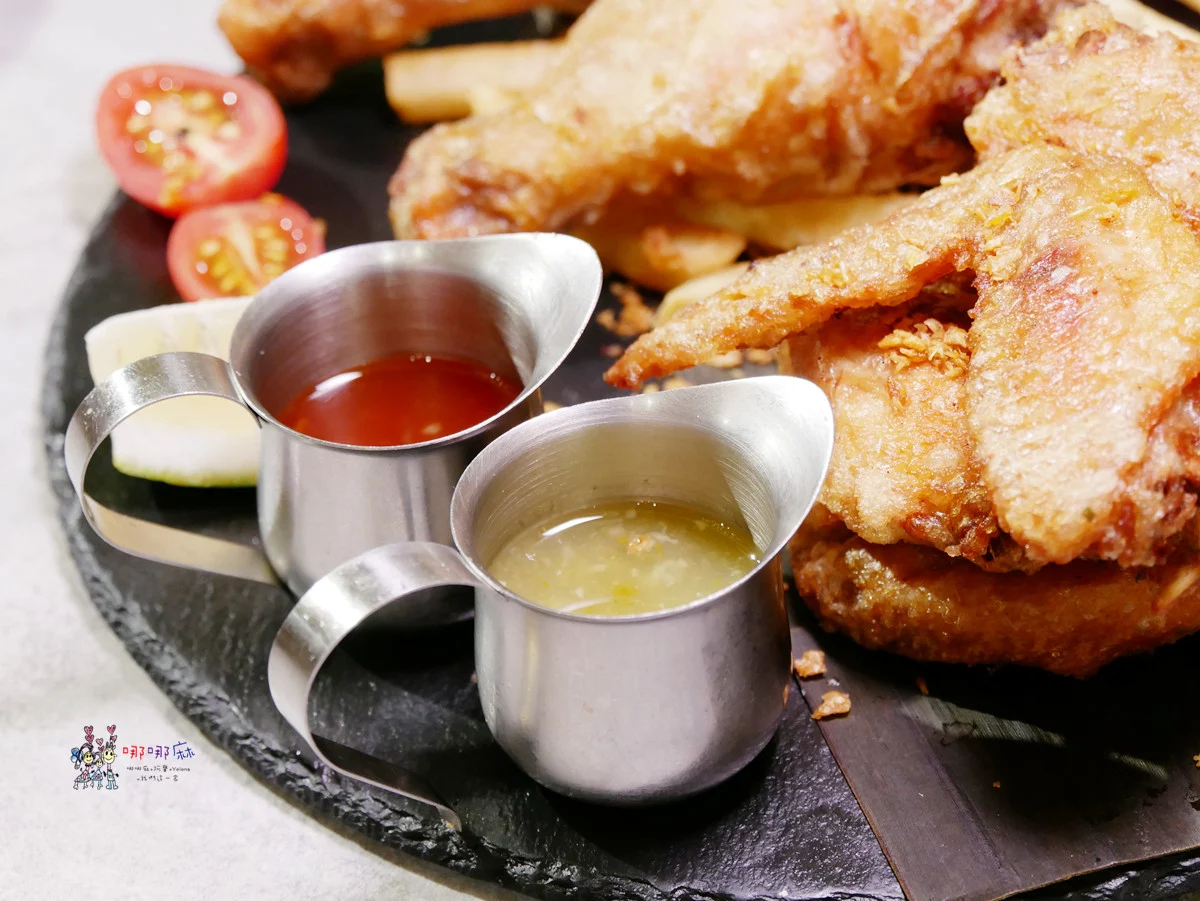 不得不說這一道是所有菜色中最讓我驚豔的,它一上桌就香到我們三個人的肚子馬上進入飢餓狀態,和一般炸雞店裡的那種味道不太一樣,有一種復古的炸雞香。