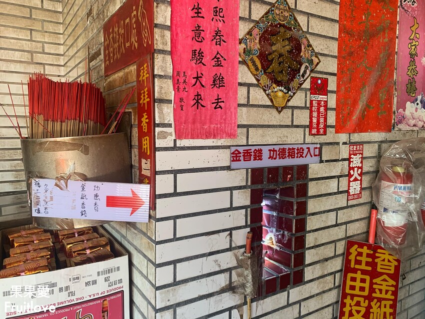 在泡麵區的後方是拜土地公用的金紙,還有金香錢跟功德箱投入口,樓上有香沒有金紙