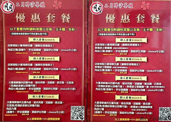 『二月牌沙茶爐』是傳統沙茶爐,海鮮塔是用當日採買新鮮現流海鮮來搭配傳統沙茶爐,海鮮塔有分大小,大層一層$670,小層一層$350,由顧客決定幾層及種類,小層海鮮兩個人也可以用餐