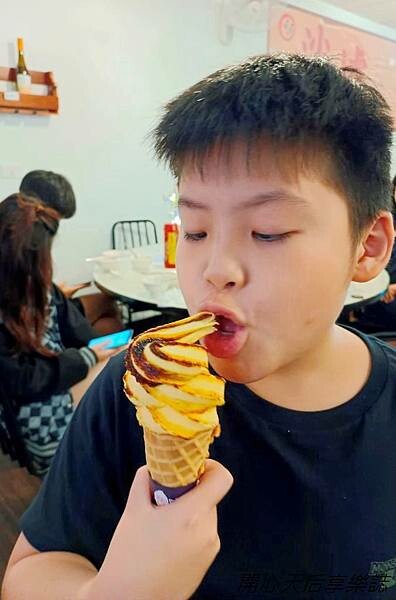 我吃了一口,口感很柔滑綿密,濃郁的布丁巧克力味道,十分甜蜜可口