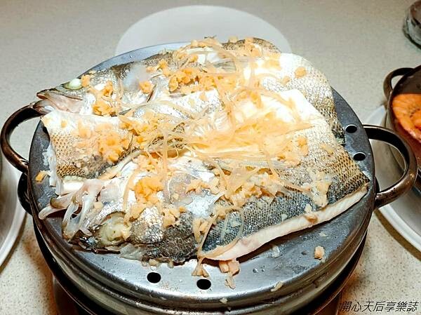 鱸魚,魚肉上放有不少辛香料,提鮮不搶味,鱸魚肉質細嫩,鮮甜無魚腥味、無土味