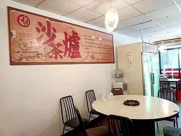 『二月牌沙茶爐-新莊店』共有兩層樓,一樓採傳統餐館裝潢,不同形狀的竹編吊燈散發出溫暖燈光,很有親切感