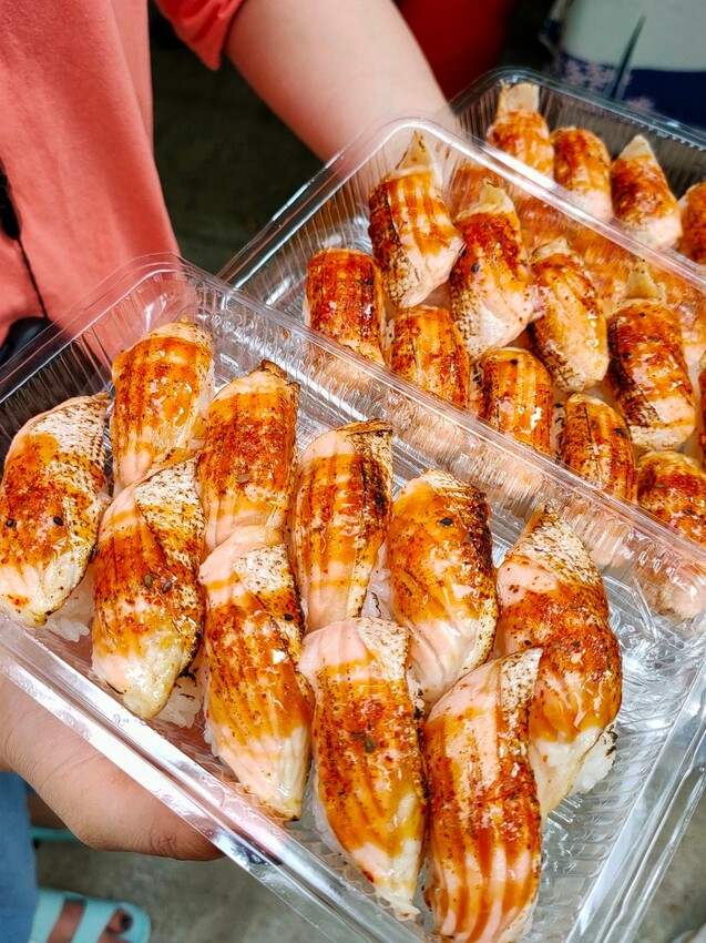 我當天早上在西門町時就有先打電話預約兩盒炙燒鮭魚握壽司