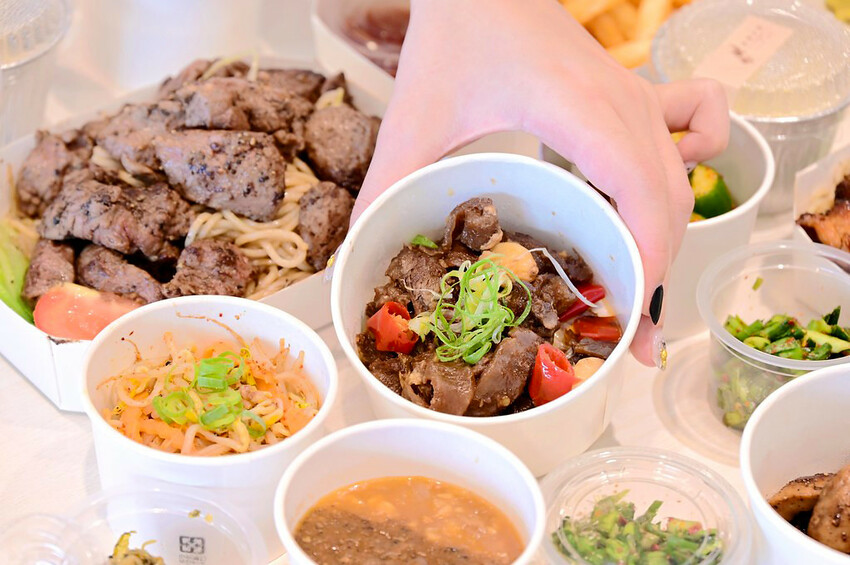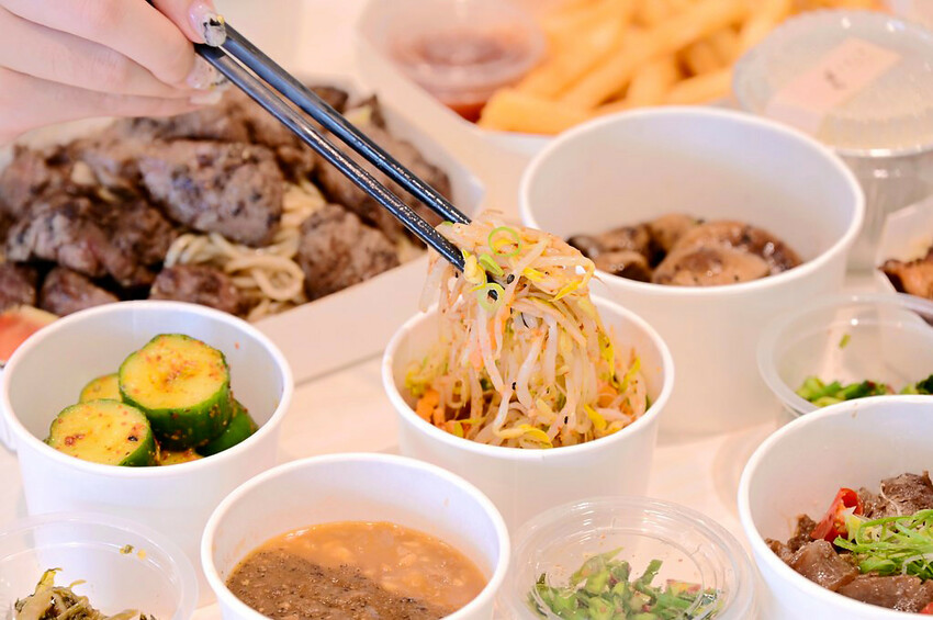 也許可以考慮跨界做個韓式料理餐廳;首先辣牛筋我還蠻喜歡的,牛筋燉得軟卻不爛,入口還帶點微Q口感,帶肉部份相當入味且嫩,調味是有辣感的辣度非常下飯好吃;韓式豆芽菜我很推薦,有辣度而且選的是細的豆芽口感脆嫩;