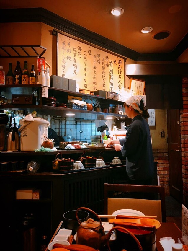 Sharon和日本朋友一起造訪的是表參道店~大家不要撲空囉!表參道店位於地下一樓,入口就是像這樣。打開木門的時候會有清脆鈴聲,店員會像家人一樣招呼你。等會兒端上熱騰騰的米飯,就更有家的感覺囉。
