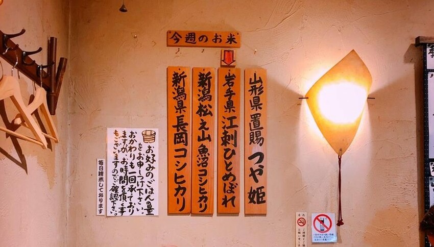 到店內後往牆上一瞧,就可以望見「本週的米單」哦!如果你想要嚐遍各地的米,又或者想要比較日本各地的米有什麼不同,可以每天都來做筆記哦。