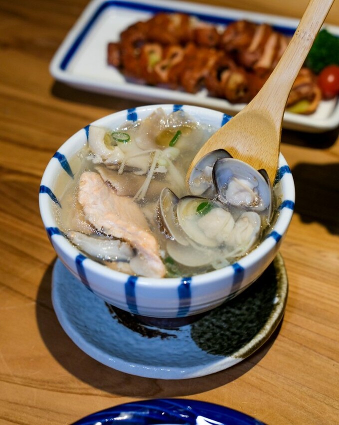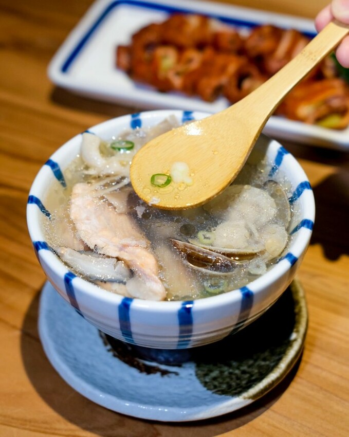 ▼湯頭清澈的養身鮮魚湯,配料包含鮮魚片、蛤蠣和香菇等超級澎湃,鮮美中散發著淡淡薑味,喝起來十分清爽不過鹹~